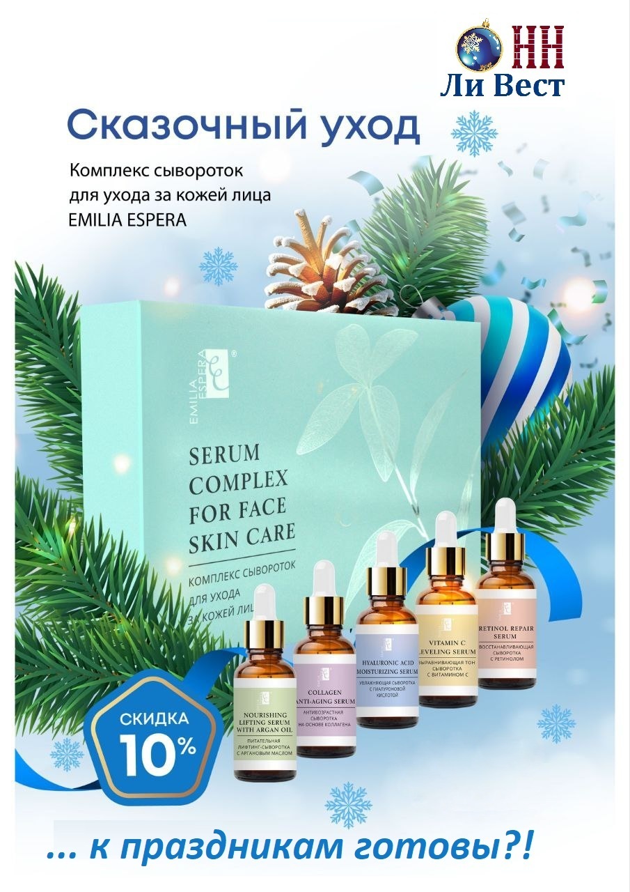 Приобретайте комплекс сывороток для ухода за кожей лица EMILIA ESPERA со скидкой 10 %!